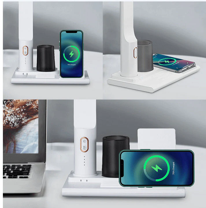 Desk Lamp with Wireless Charging and Pen Holder White